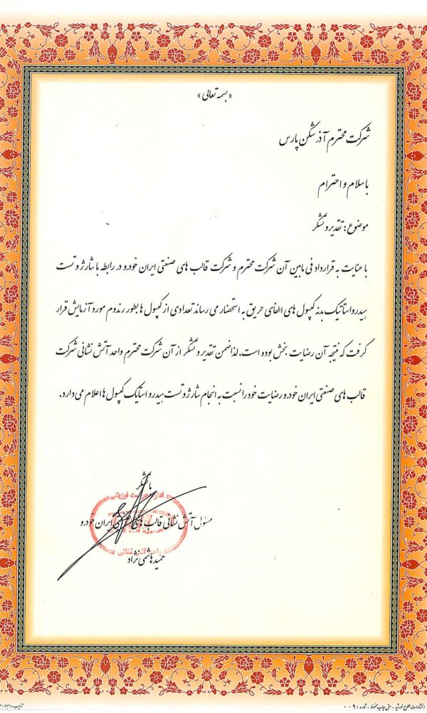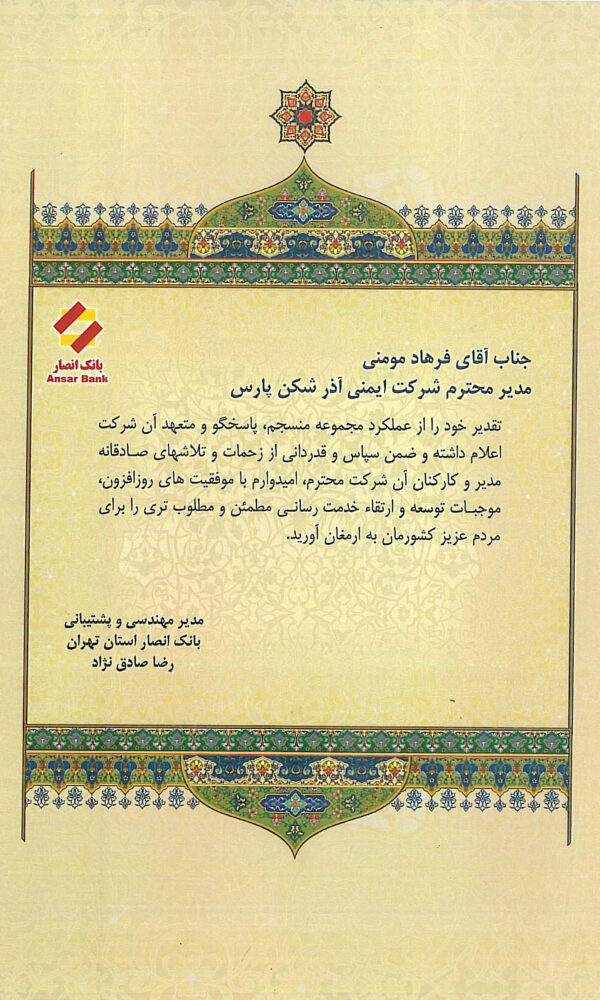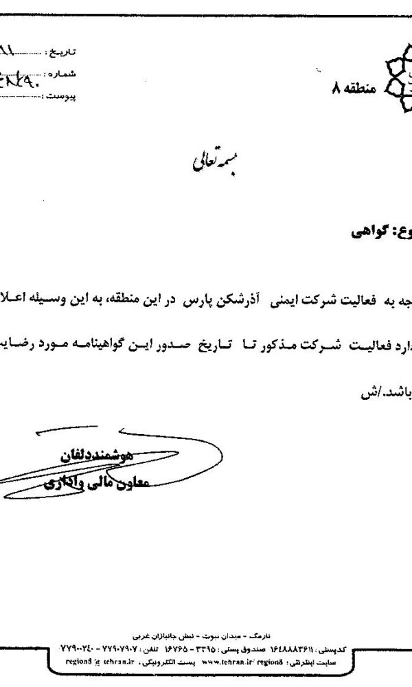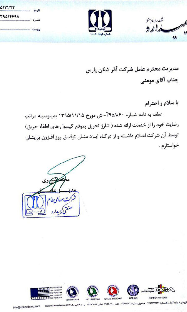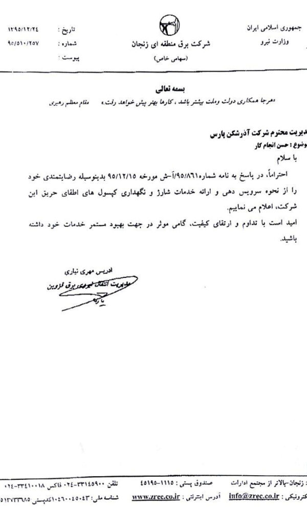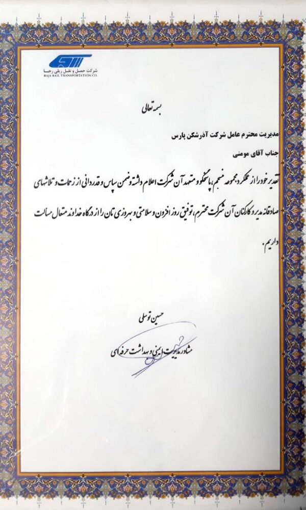 شايان ذكر است به علت محرمانه بودن اسامي برخی مشتركين از قراردادن کلیه تقدیرنامه و رضایت مندی های مشتریان معذوریم!