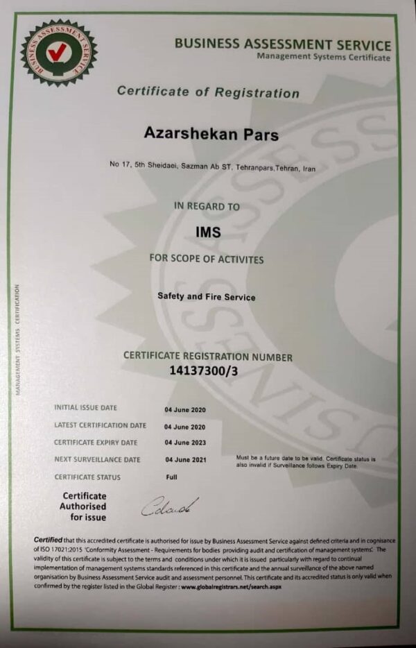 شرکت آذرشکن پارس ارائه دهنده کلیه خدمات ایمنی و آتش نشانی